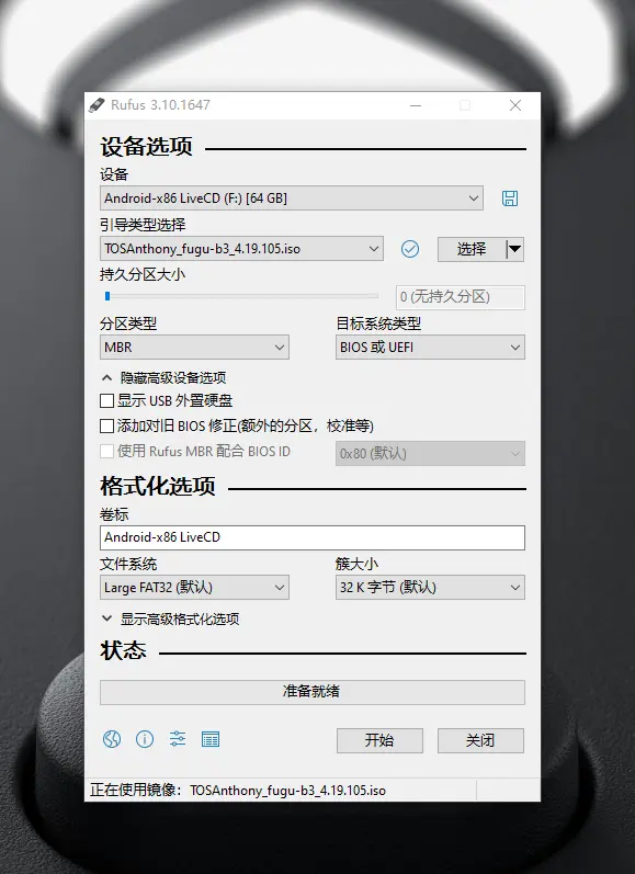 步骤3:Rufus打开看是否显示U盘 然后选择镜像即可